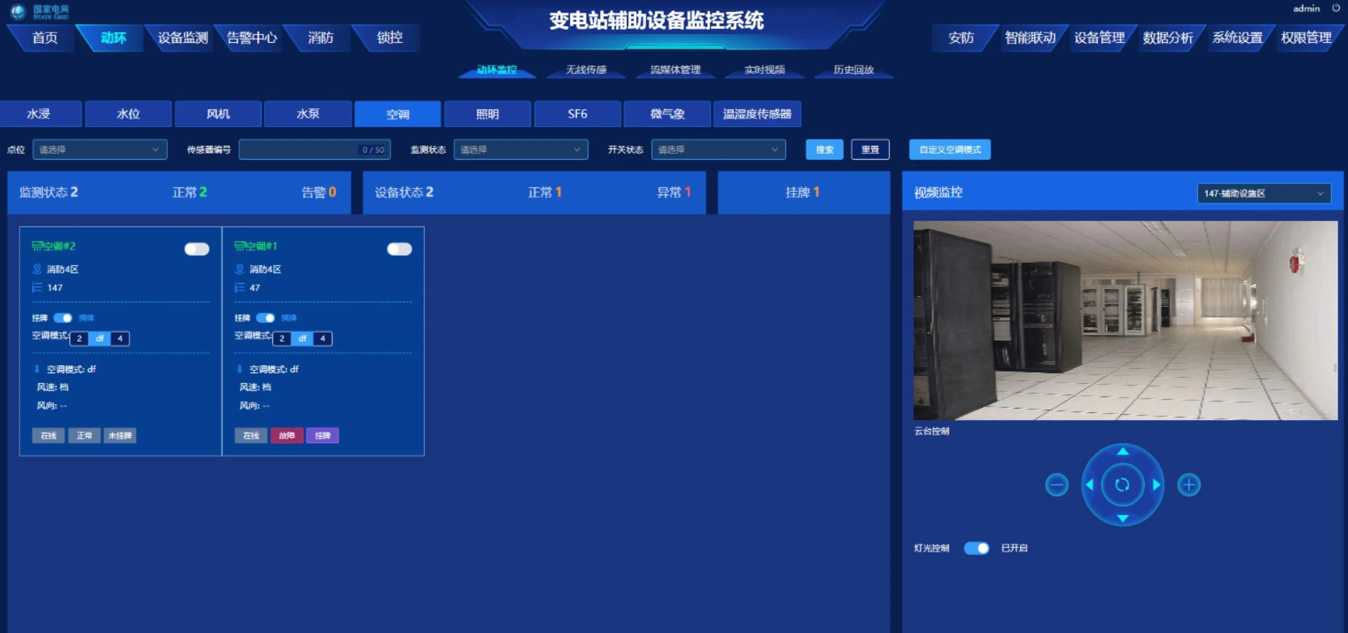 實(shí)時監(jiān)測SF? 、O?氣體濃度、對水泵、空調(diào)、水浸、風(fēng)機(jī)和照明等設(shè)備狀態(tài)與環(huán)境全面監(jiān)控,確保設(shè)備正常運(yùn)行,及時預(yù)警風(fēng)險,提升設(shè)備管理效率。