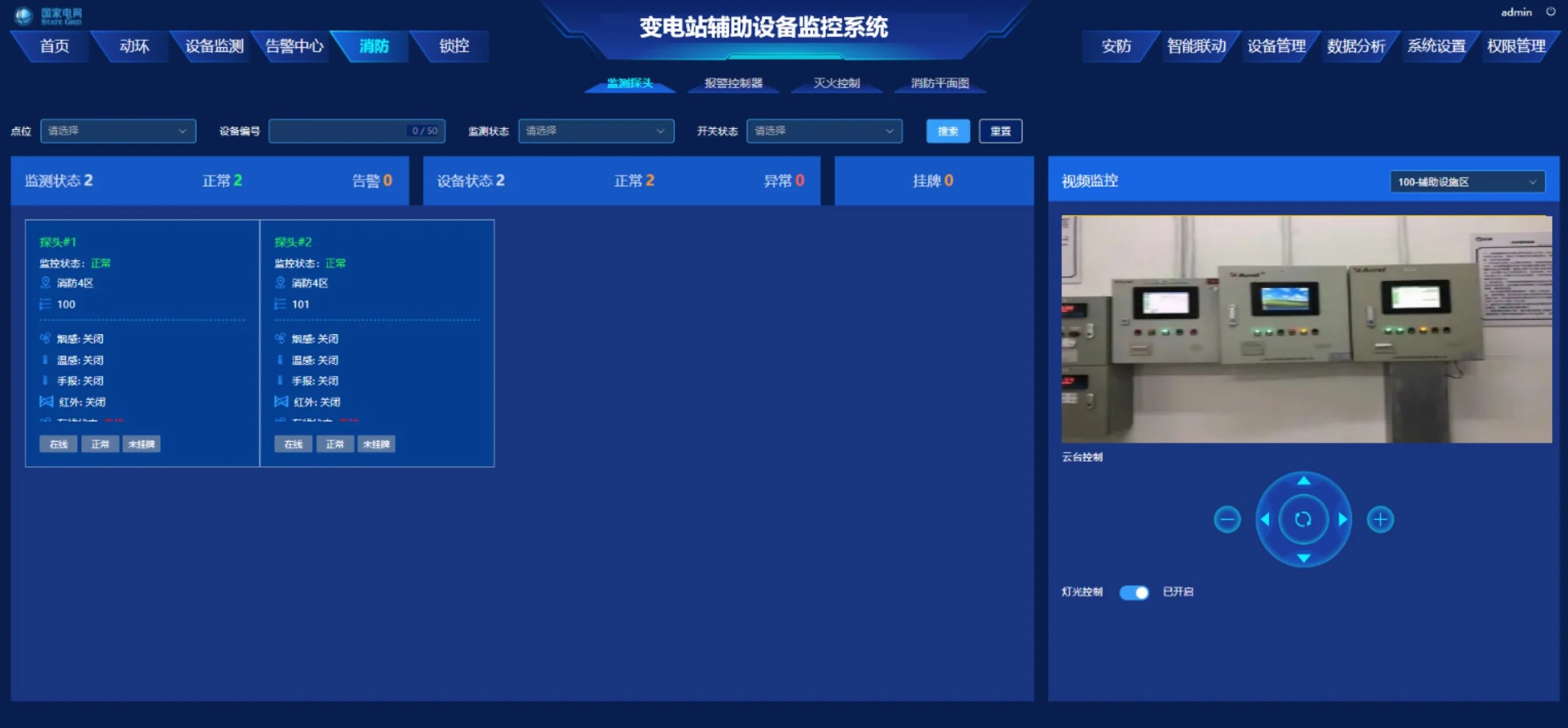 對變電站內(nèi)的消防設(shè)備進(jìn)行實(shí)時監(jiān)控,包括探頭、煙霧報警器、溫度傳感器等,及時發(fā)現(xiàn)火災(zāi)隱患,對變電站內(nèi)的滅火設(shè)備進(jìn)行控制,提高變電站的安全性。