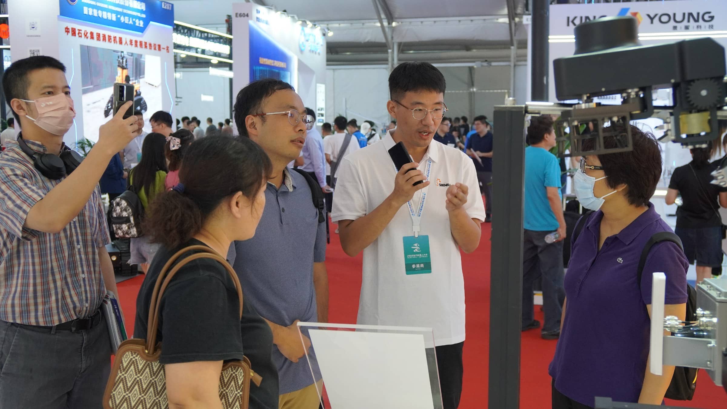 申昊科技的展區,一臺臺智能機器人在展臺上展現出高度靈活的動作和智能感知能力,引得現場觀眾紛紛駐足觀看。